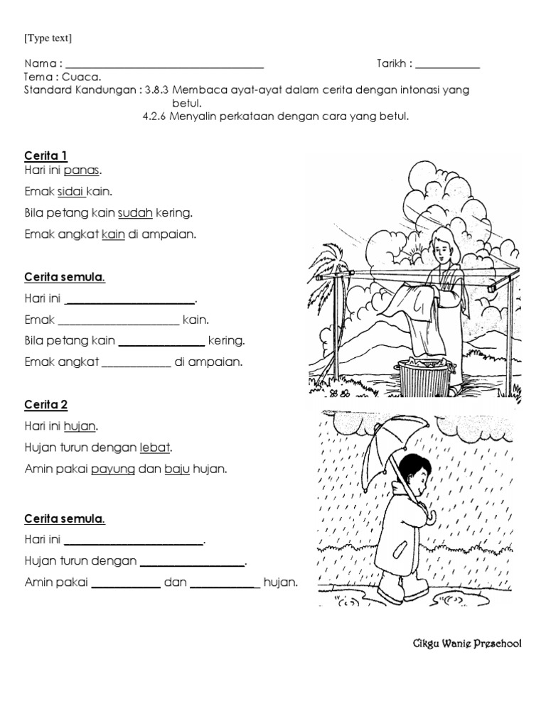 Save Save Lembaran Kerja Cerita Cuaca For Later. Bahan-bahan ini merupakan perkongsian terpilih guru-guru seluruh Malaysia. J nama dan alamat majikan.